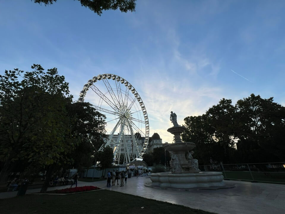Pela área central da cidade temos ainda a Budapeste Eye, a roda gigante de 65m altura e com duração de 8 a 10 min, por 3 voltas. Custa cerca de R$ 80. E sem querer passamos novamente pelo bairro judeu e descobrimos o Gozsdu Udvar, um complexo histórico de pátios interligados com bares, cafés e restaurantes. No centro dele havia um globo (mundo) suspenso. A coisa mais linda de ver!