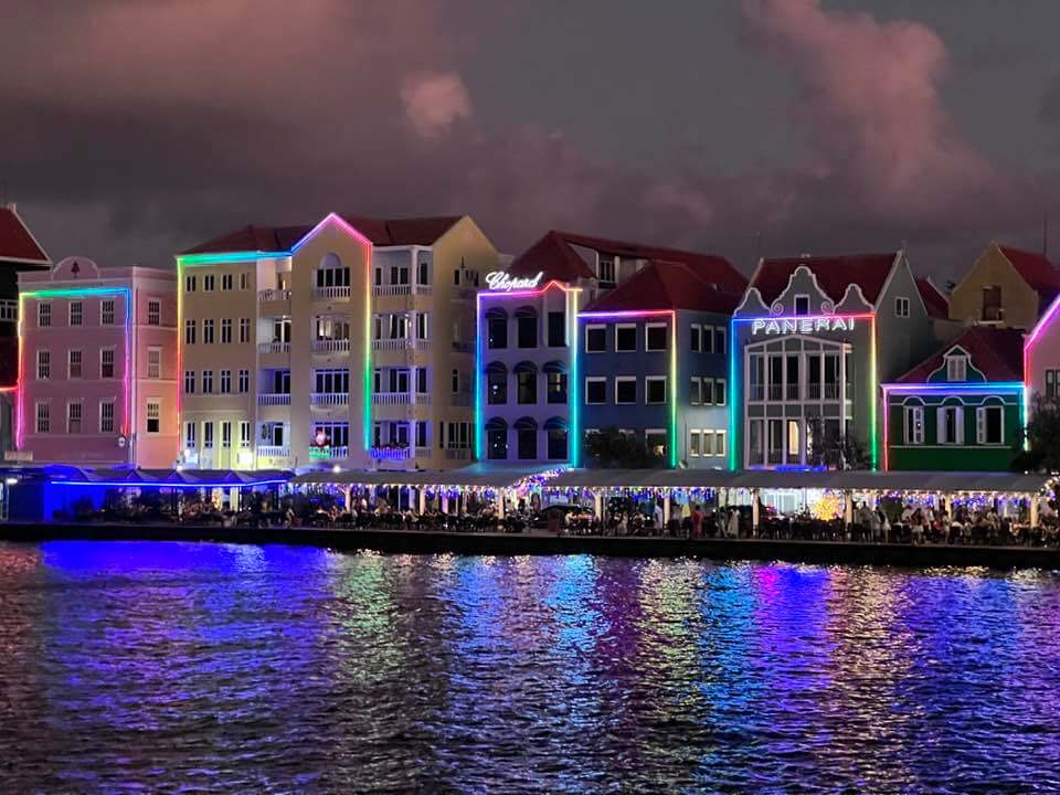 Essa fileta de prédios chama-se Handelskade. São construções históricas dos séculos XVII e XVIII. Do outro lado dá baía Santa Anna, está Otrobanda, área mais residencial e que conta com museus e ruas históricas. O país tem pouco mais de 150 mil habitantes e está fora da rota de furacões. Dependendo de onde você se hospedar em Otrabanda, dá pra ir até a ponte flutuante caminhando numa boa. A gente aproveita pra dar uma dica de hospedagem com ótimo custo x benefício: Mustique Suítes.