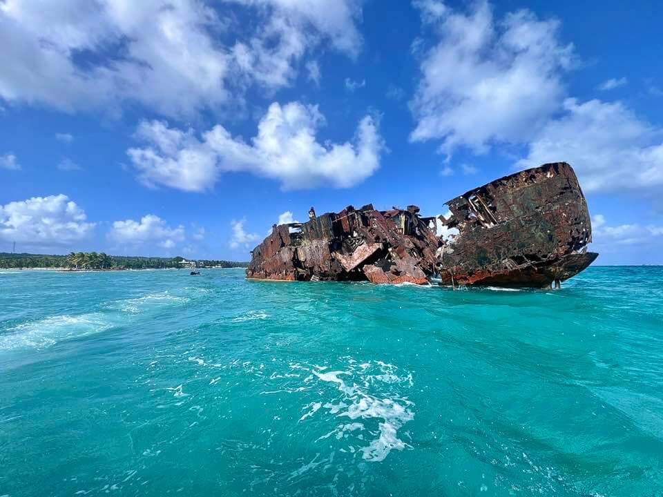 O almoço não está incluso e você faz o pedido (opcional) ainda na embarcação para adiantarem o prato. Custa cerca de 50 mil cops (R$ 72) em média. Passamos por um navio naufragado há 71 anos que transportava mercadoria vindo do Panamá até chegar à região do Aquário, onde estão as ilhas Palmeira e Rosa interligados por uma ponte flutuante.