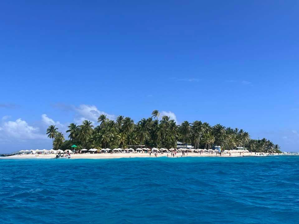 A ilha é incrível pra banho e o cenário parece de filme! O aluguel de cadeira custa 60 mil cops (R$ 86) e guarda sol 50 mil (R$ 72). Tem locker a 10 mil (R$ 14,40) com cadeado. De lá, passamos pelos manguezais, uma área de proteção onde não é permitido banho. Neste local ficam as embarcações em casos de furacões, uma forma de protegê-las pois há um certo isolamento e as águas são bem calmas.