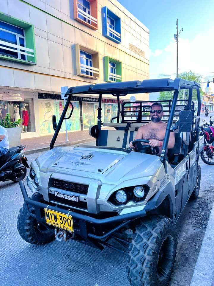 Em San Andres, o “Mule” é um meio de transporte turístico super popular e divertido! Ideal pra quem quer dar uma volta completa na ilha. É um veículo aberto, parecido com um buggy, o que permite que a gente tenha uma experiência de circular com vista do mar, vento e clima caribenho, tornando o deslocamento parte da experiência.