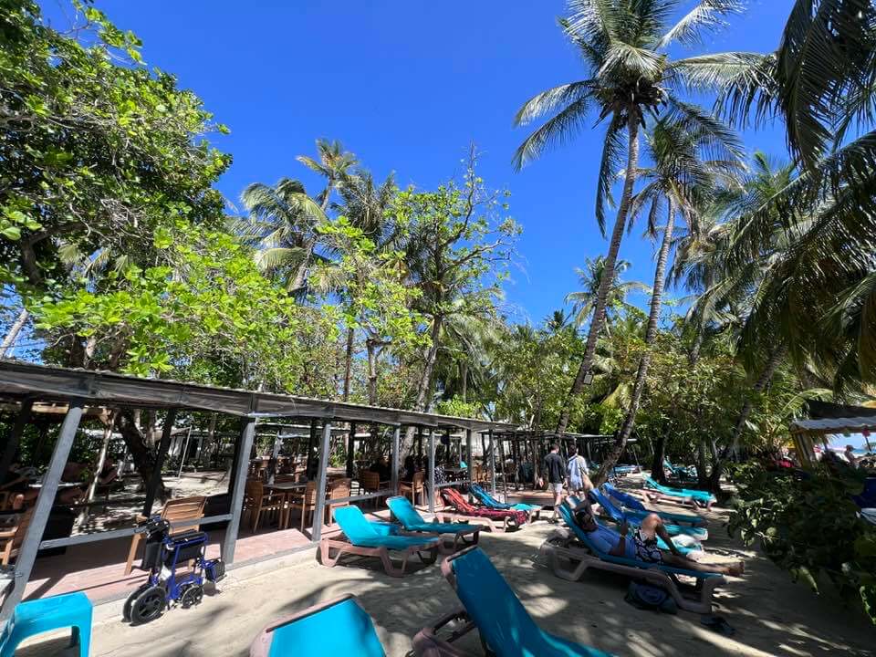 Fomos pra Praia Rocky Cay, do centro até lá levamos apenas 20 minutos. Esta é uma região cheia de beach clubs. Ficamos no Aqua Beach Club, que achamos o preço justo. Eles cobram 30 mil Cops (R$ 43) por pessoa com direito a consumação do valor. É o preço de um petisco. O Beach conta com ótima infra, banheiro, espreguiçadeiras, etc. E dele temos acesso à praia, poucos passos e estamos na água.
