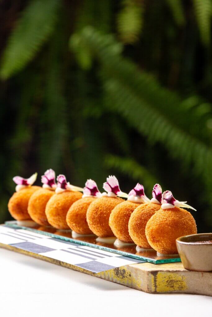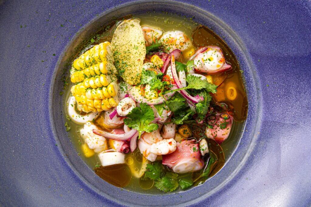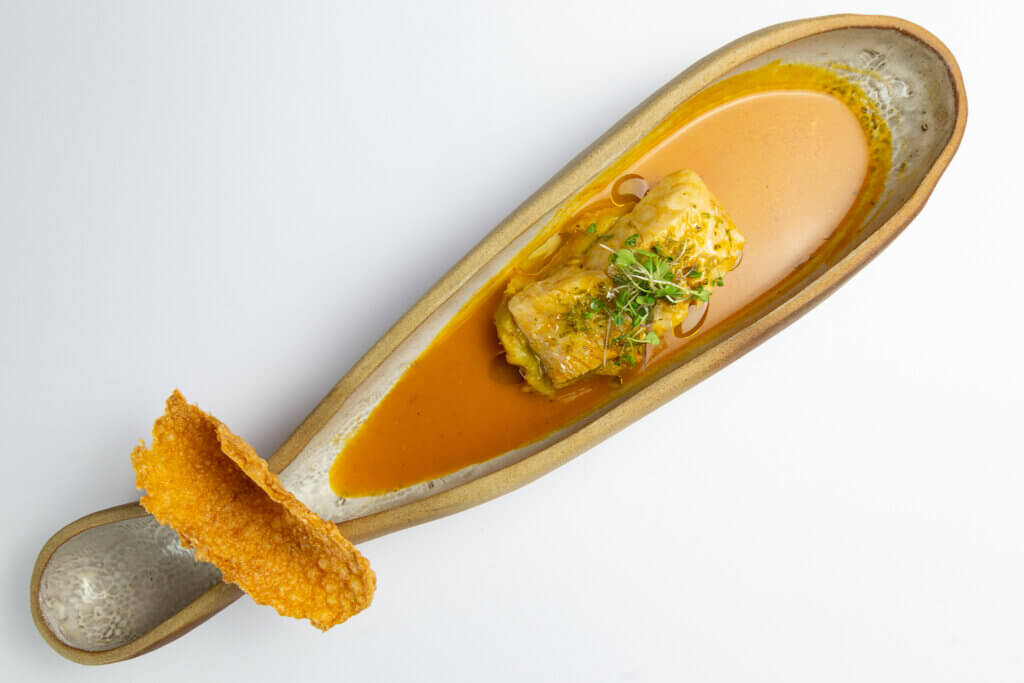 Tem ainda peixe em crosta de pimenta limão, risoto de palmito limão curado e azeite cítrico; lula recheada com queijo e purê de bananas, gratinada em molho com leite de coco, servida com arroz cítrico e cremoso de coentro; tagliolini negro, com shitake de Cunha e lulas de Paraty, vem com coalhada seca e manteiga crocante com sálvia e avelãs.
