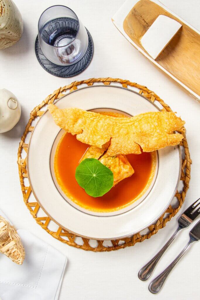 O restaurante é inspirado na cultura caiçara, a partir de todos os elementos que compõem a cidade; de pessoas às manifestações culturais; do território aos ingredientes; dos processos às histórias. Funciona há mais de três décadas, todos os peixes e frutos do mar chegam da baía de Paraty, respeitando os ciclos e períodos de defeso. O mesmo acontece com a agricultura familiar local e da cidade vizinha de Cunha. Entre os fornecedores, Angeli dos Temperos, Cida do Palmito, Marilza catadora de siri, etc.