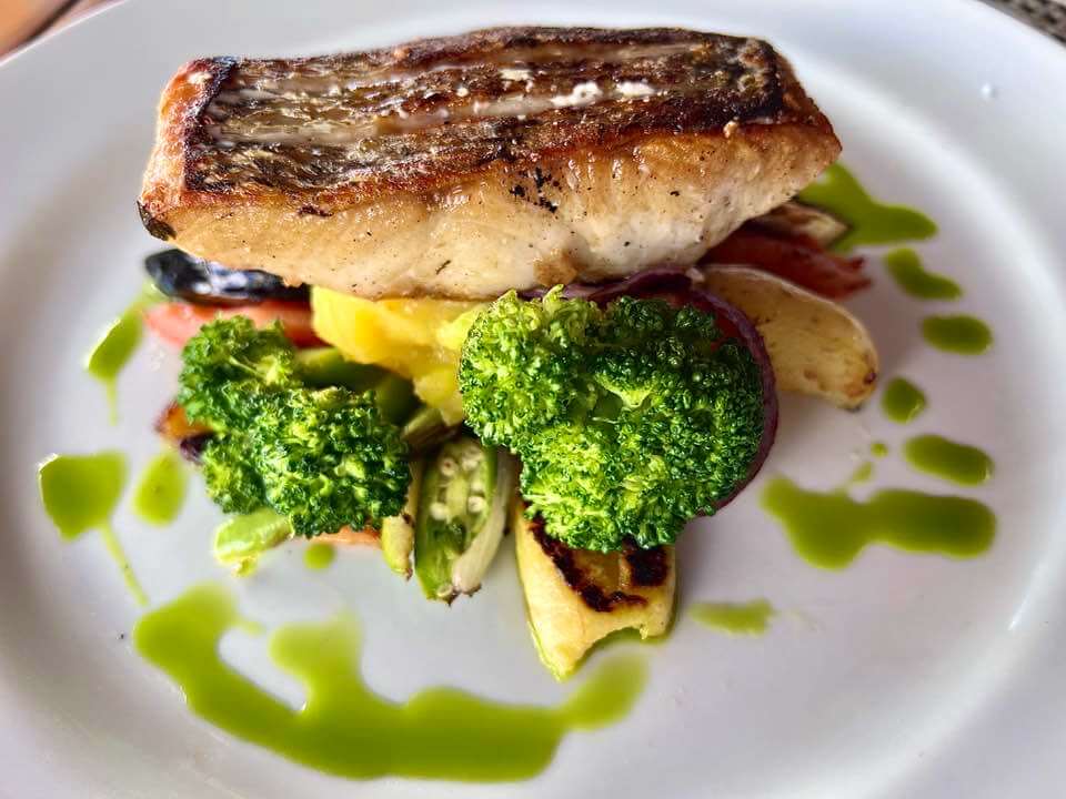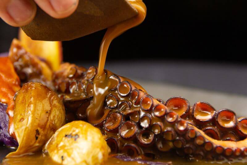 De principal as opções são variadas e difícil é decidir qual escolher. Dos campeões da cozinha estão o peixe maturado, servido com molho de especiarias da Mata Atlântica, purê de banana, farofa de alho, pirão e arroz de coco; e o maravilhoso polvo de pesca artesanal, feito na brasa, com molho e emulsão de páprica picante, purê de batata doce roxa da própria horta e alho assado.